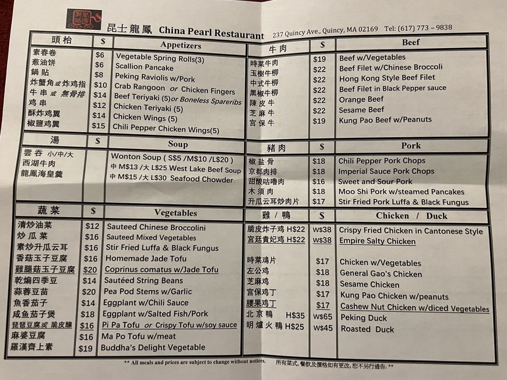 Welcome to China Pearl, your ultimate destination for authentic dim sum and traditional Chinese cuisine located at 237 Quincy Ave, Quincy, MA. This vibrant restaurant captures the essence of Chinese culinary tradition, offering a menu brimming with delightful options. Specialties include Shumai and har gow, served fresh alongside enticing dishes like Braised Pork Belly and House Seafood Chowder Soup.